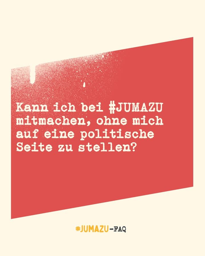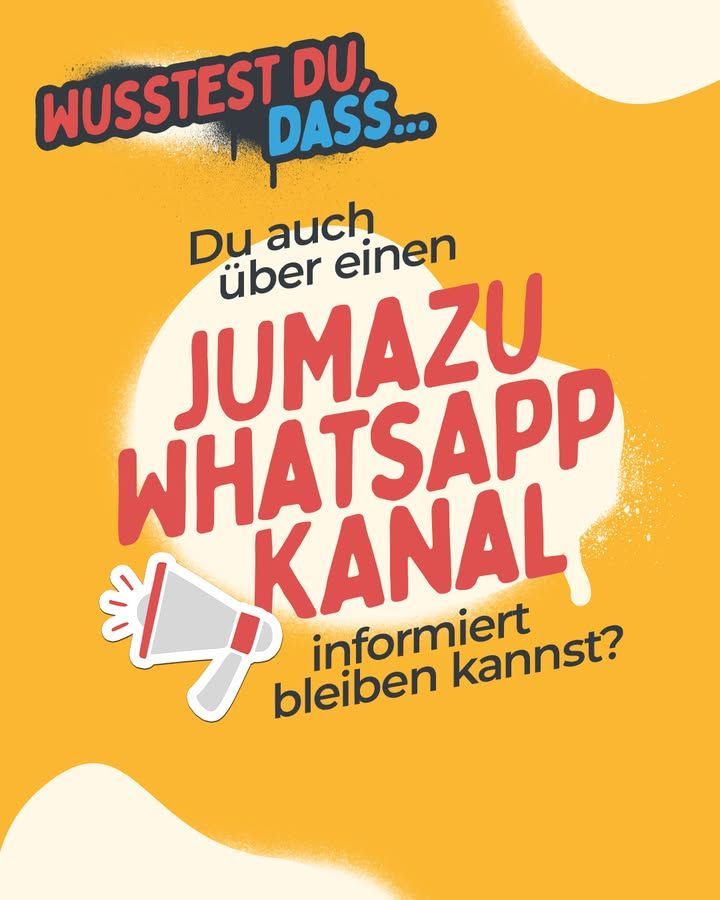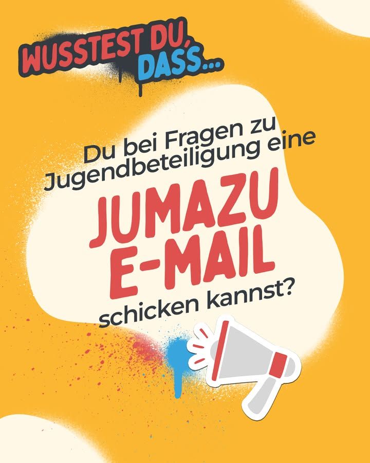 JumaZu unterstützt dich in deinen Wünschen und Ideen für deinen Heimat- oder Schulort. Sei es in Sachen "Hilfe zur Selbsthilfe", Bürokratie-Begleitung, Kontaktvermittlung, organisatorische Unterstützung, Equipment-Ausleihe, Beteiligungsangebote oder Beantwortung von Fragen.