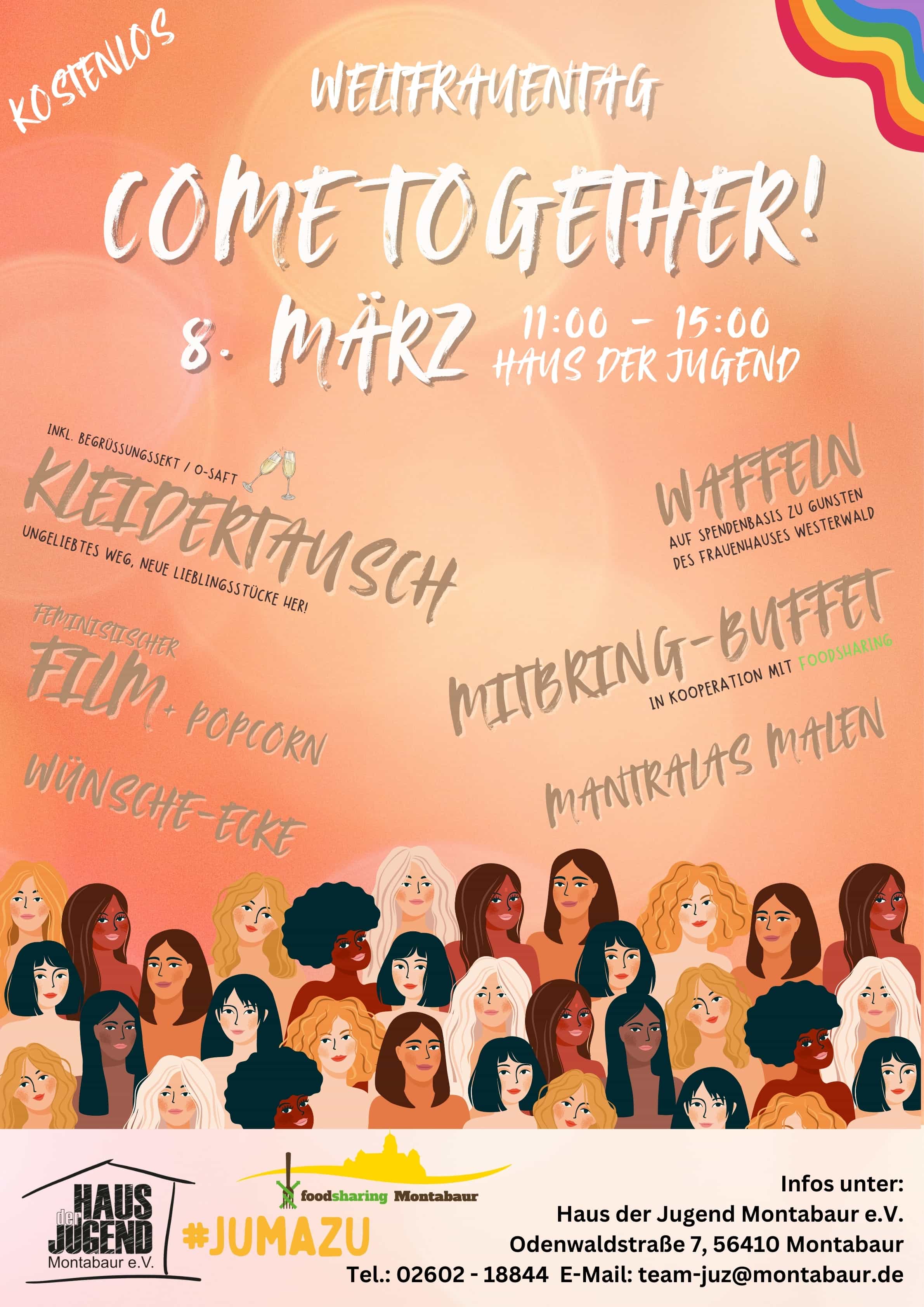 Come together! Wir feiern die Weiblichkeit! Und das mit Kleidertausch, Film, Mitbringbuffet, Wünsche-Ecke und Waffeln gegen Spende für das Frauenhaus Westerwald.