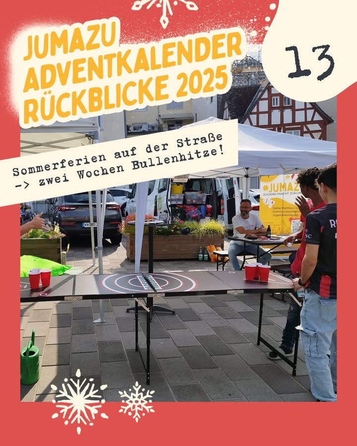 JumaZu unterstützt dich in deinen Wünschen und Ideen für deinen Heimat- oder Schulort. Sei es in Sachen "Hilfe zur Selbsthilfe", Bürokratie-Begleitung, Kontaktvermittlung, organisatorische Unterstützung, Equipment-Ausleihe, Beteiligungsangebote oder Beantwortung von Fragen.