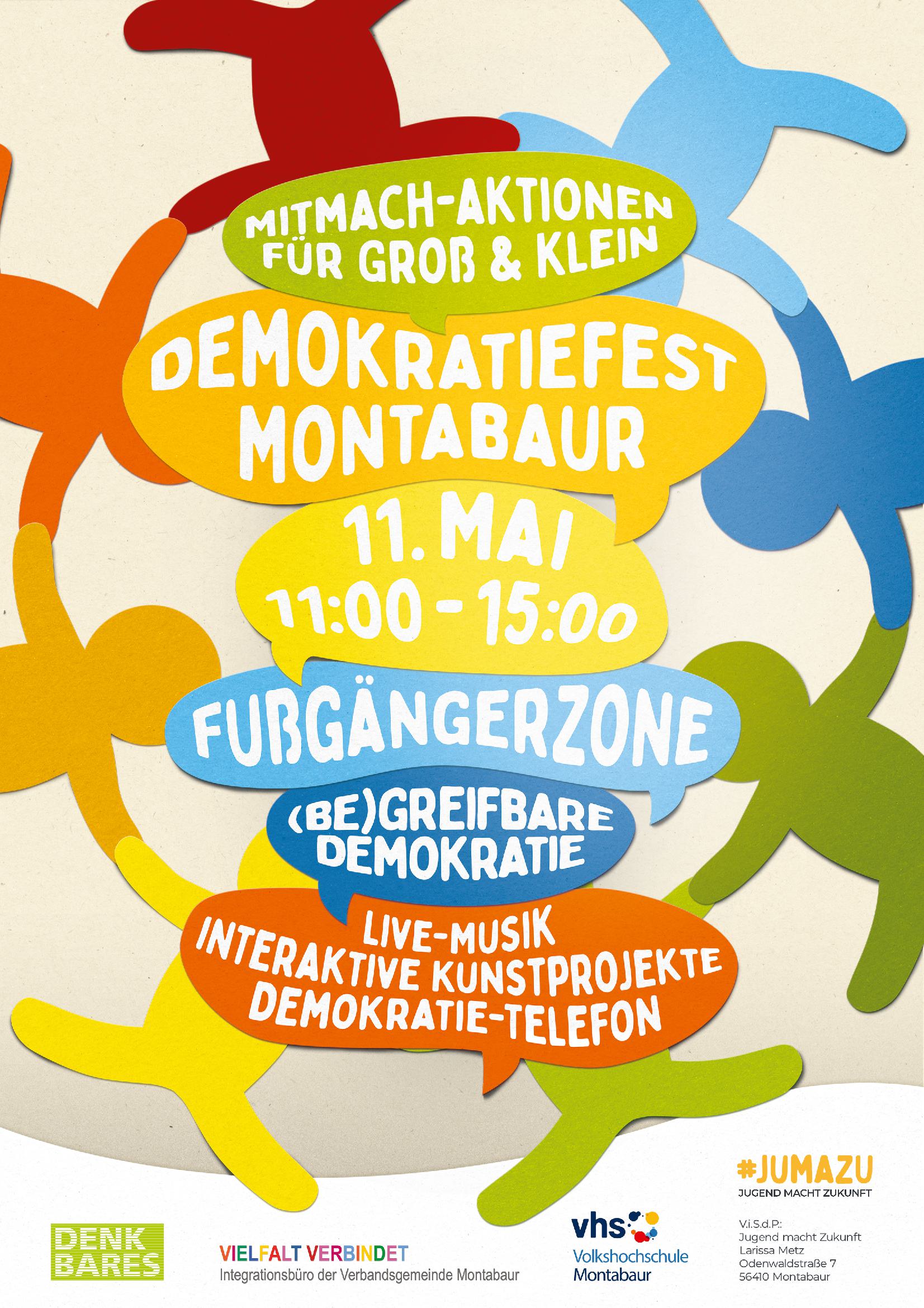 Wir feiern die Demokratie! Sei dabei und stöber dich durch unsere Stände und Mitmach-Aktionen.