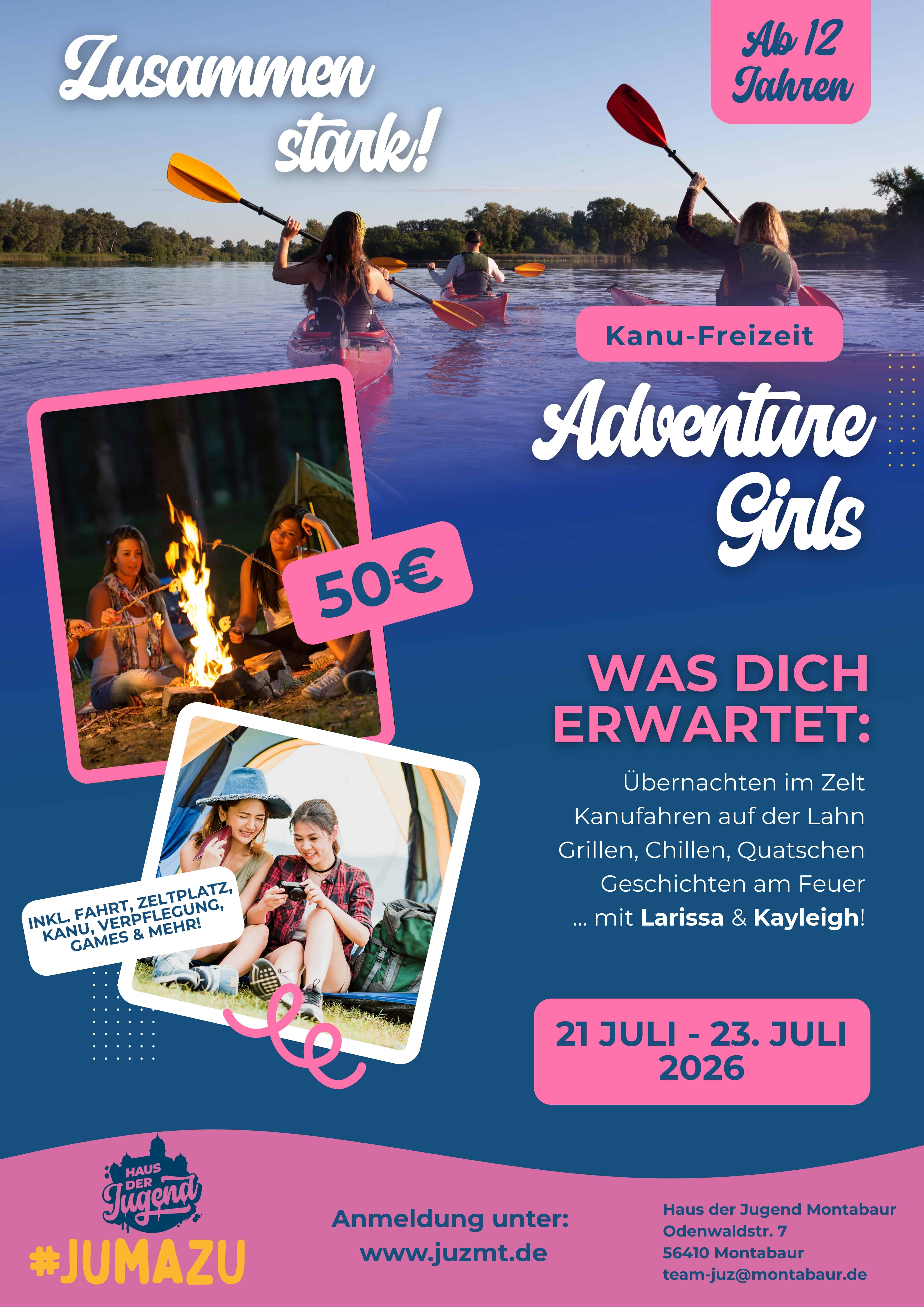Gemeinsam paddeln wir über die Lahn, chillen am Feuer und zelten unter dem Sternenhimmel. Darüber hinaus gehen wir der Frage nach: Was beschäftigt mich momentan besonders und wie komme ich meinem Ziel näher?